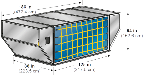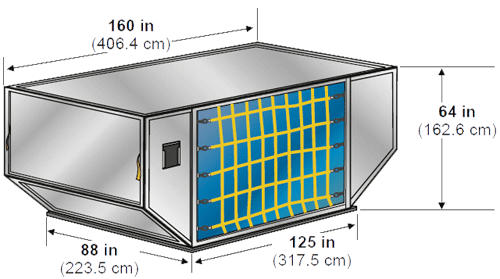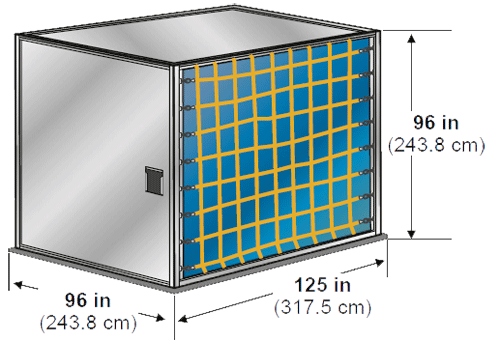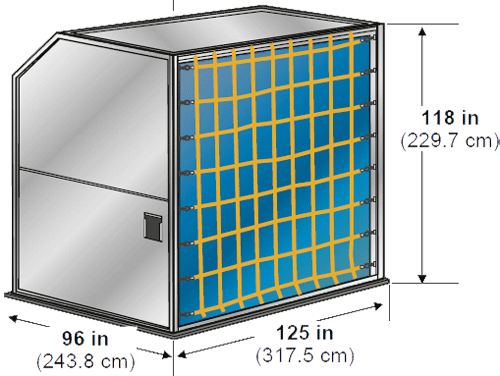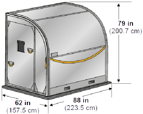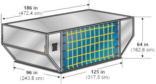 Main-deck upper contoured container. Door is canvas with built-in net door straps.