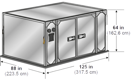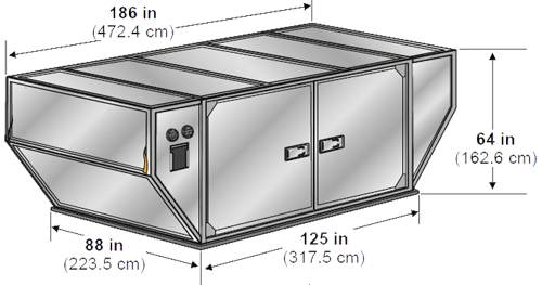 Full-width lower hold container. Door is canvas. Center post swings clear for loading. Refrigerated version has solid door.