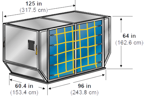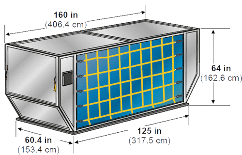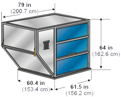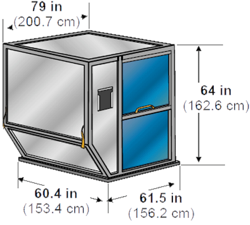 Full-width lower hold container with angled ends. Door in canvas with built-in door straps.